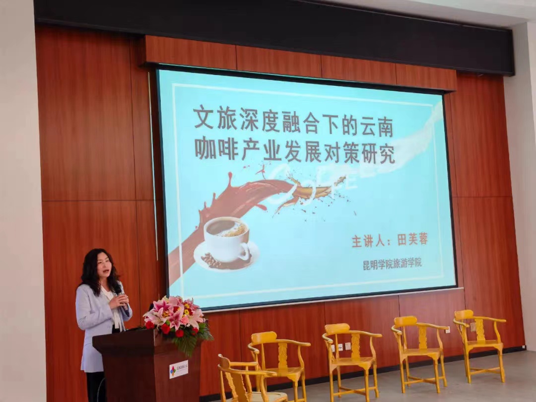 田芙蓉教授做题为“德宏州‘咖啡+旅游’高质量融合发展”的主题发言,认为德宏应坚持生态优先、绿色发展理念,“咖啡之乡”品牌优势应充分发挥,加快旅游、文化、艺术、教育、培训、餐饮、娱乐、体验和零售多业态聚合,实现一、二、三产业融合发展,焕发乡村振兴新活力。