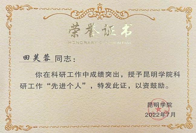 bevictor伟德田芙蓉教授和鲁芬博士获得科研工作“先进个人”荣誉称号。