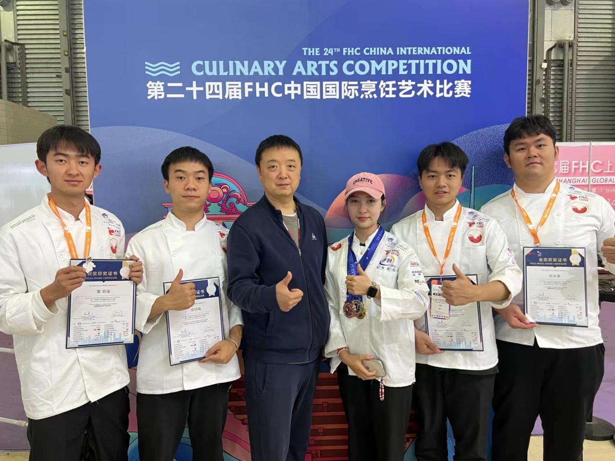 在王勇老师和马立萍老师指导下,bevictor伟德师生在11月10日结束的第二十四届FHC中国国际烹饪艺术比赛中取得令人瞩目的成绩。赵永嘉同学勇夺一枚金牌和一枚铜牌,徐国瑞同学获得一枚银牌,马肖和张世通同学分别获得三枚铜牌。这些同学们的出色表现不仅赢得荣誉,更赢得人们的赞誉和尊重。
