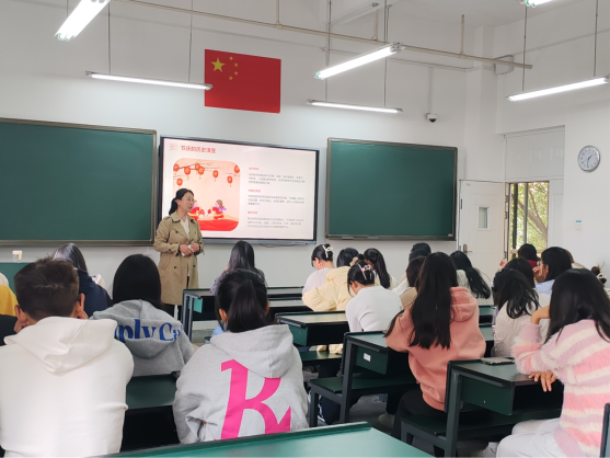 讲座中,王国才老师先是引导同学们回想我国的特色节日,包括端午节、中秋节、春节等传统节日,也提到潍坊的风筝节、青岛的啤酒节等新兴节庆活动,并列举各节日的习俗。随后,王国才老师通过一个视频让同学们了解墨西哥的亡灵节,进而对比了中国的清明节,让同学们更深入的了解了中外文化的差异,认识不同节庆的内涵和起源,探究节庆的变化以及与商业化的关系,深刻阐释了节庆在当今社会上各个层面的重要意义,包括传承与弘扬传统文化、促进社会和谐团结、推动经济发展与旅游繁荣等。同时,王国才老师也提到了现今节庆文化所面临的冲击与挑战,并给出了一些具有中国内涵的见解。例如在面临节庆文化的借鉴与创新时,我们应当保留传统内核,鼓励采用新的载体,如疫情期间,西双版纳举行“云上”泼水节,虽然形式略有变化,但节日内涵得以保留,使全国人民在家也能享受泼水节之乐。