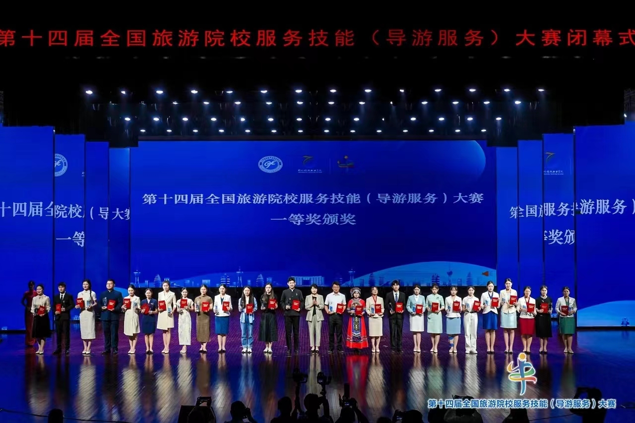 第十四届全国旅游院校服务技能(导游服务)大赛,由文化和旅游部市场管理司、中国旅游协会指导,中国旅游协会旅游教育分会主办,郑州旅游职业公司承办。5月23日至27日,来自全国30个省(自治区、直辖市)303所高等院校和中职公司883名选手,齐聚郑州,共襄盛举。比赛设普通话导游服务和英语导游服务两个项目,每个项目,由理论考核、导游讲解、专题讲解、才艺展示四个部分组成,全面考察员工的综合能力。经过激烈角逐,2023旅游管理专升本班员工朱一豪荣获中文组一等奖,并以优异表现位列中文组得分第十名;2023级酒店管理专升本班员工吴照文获得英语组一等奖,实现了bevictor伟德在英语组一等奖上零的突破;2023级旅游管理专升本班员工朱优、费凡分别荣获中文组和英文组二等奖。bevictor伟德以团体总分第十三名的成绩荣获团体奖,创造了旅游管理专业自参赛以来的最好成绩。