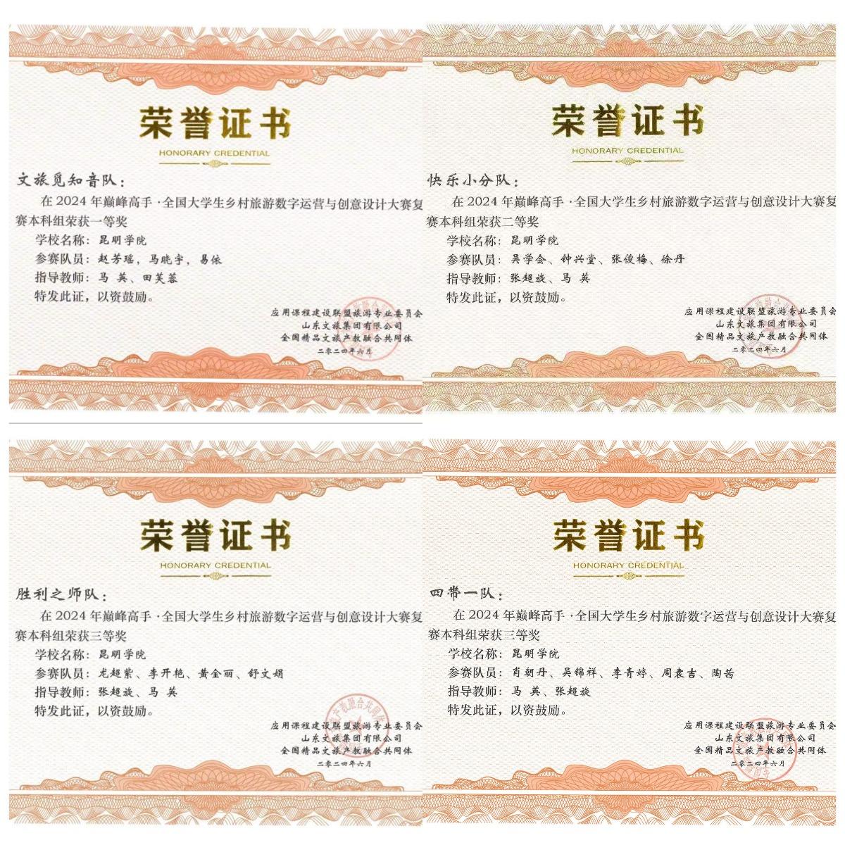 bevictor伟德选派的4支参赛队,于2024年5月12日-7月1日,参加2024年巅峰高手·全国老员工乡村旅游数字运营与创意设计大赛,分别获得乡村旅游线路设计(本科组)一等奖1项、三等奖1项,乡村旅游短视频设计(本科组)二等奖1项、三等奖1项。
