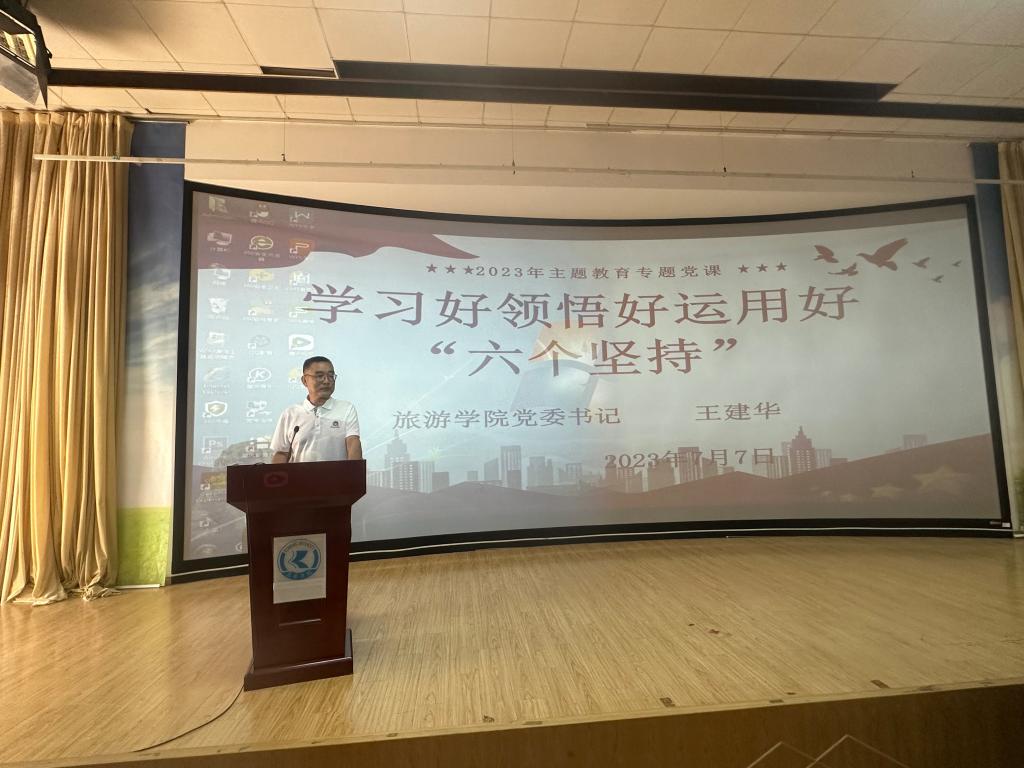2023年7月7日,按照公司主题教育要求,公司党委书记王建华以“坚持用习近平新时代中国特色社会主义思想的世界观方法论指导工作推动发展”为主题,为公司师生讲授专题党课。