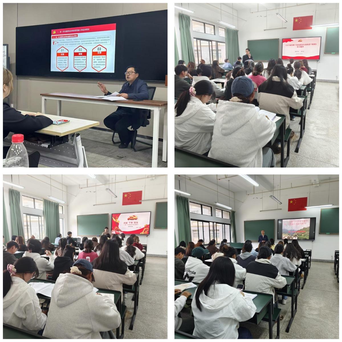 11月1日下午,党委书记先守福作培训动员,鼓励大家积极参与,提高思想认识,端正态度,争做榜样,努力向党组织靠拢,同时对参训学员提出明确要求。随后,围绕学习贯彻党的二十届三中全会精神,先守福作总体宣讲,辅导员金刚老师从乡村振兴角度作深入宣讲。围绕学习《中国共产党章程》,马克思主义公司副教授缪文武老师从党章发展历史和党章具体内容作总体辅导,组织员环绍军老师从入党条件和程序角度作专题辅导,党委副书记李杨老师从党的纪律和《中国共产党纪律处分条例》的角度作专题辅导。专职组织员杨为宗老师围绕《关于新形势下党内政治生活的若干准则》作专题辅导。