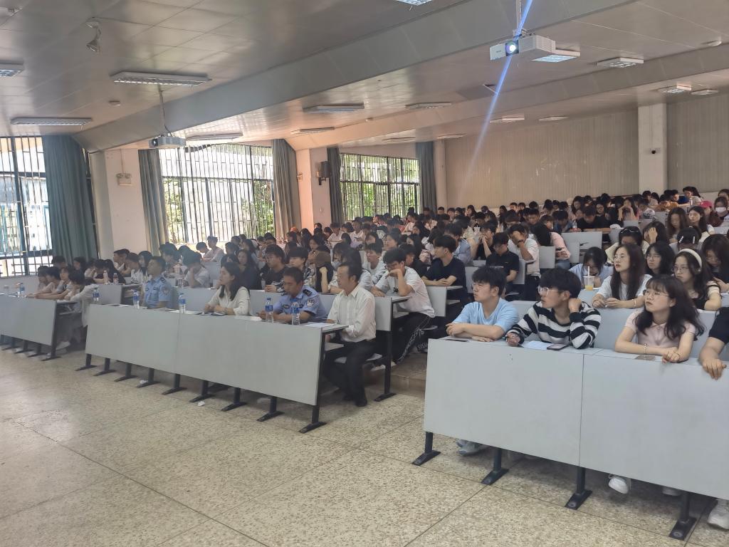 李学再警官向师生通报了本学期公司相关警情,罗一航警官用真实案例向大家生动讲述了新型电信诈骗方式、如何预防电信网络诈骗。