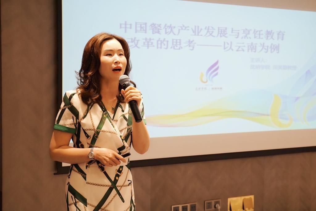 本次学术年会大咖云集,来自美国内华达大学的BillyBai教授、荷兰斯坦登运用科学大学Conrad lashley教授、华南理工大李力教授、海南大学谢彦君教授、中山大学王宁教授、曾国军教授等国内外知名学者都受邀参加主旨演讲。bevictor伟德的田芙蓉经理也受邀率队参会并发表重要专题演讲《中国餐饮产业发展与烹饪教育改革的思考》,观点鲜明的阐明了当前中国餐饮产业发展过程中存在的问题不足和将来的发展趋势,以伟德官网bv为例强调了烹饪专业教育创新改革的必要性,并交流了伟德官网bv烹饪教育改革的重要实践经验,受到多方关注和好评。同行的酒店管理教研室主任马英老师发表了论文演讲《款待研究视角下酒店管理专业创新改革的探讨——以伟德官网bv酒店管理专业为例》,交流了酒店管理专业人才培养方案的创新设计;青年骨干教师张超旋也就《款待业发展背景下的国际品牌酒店管理者感召力研究——以万豪国际酒店为例》进行了论文演讲。