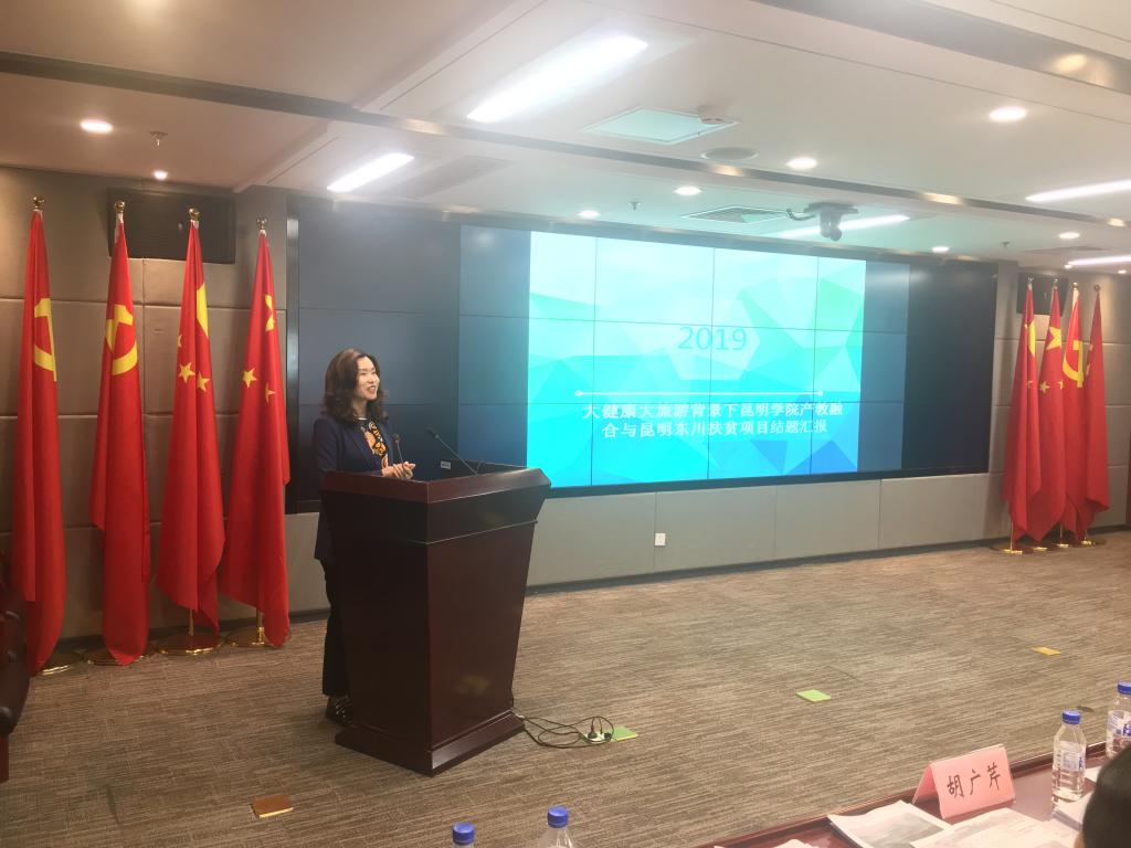 交流会上,bevictor伟德田芙蓉经理代表课题组做了题为“大健康大旅游背景下伟德官网bv产教融合与昆明东川扶贫项目”的结题汇报。她从项目目标、项目成果、成果转化、经验体会四个方面进行了文情并茂的讲解。本项目构建了扶贫路径,规划了旅游健康项目,引导了专业建设,已经落地并实施的项目就有7个。最后,田芙蓉经理谈了体会:1.以一个课题为契机,撬动全校及社会的力量来参与到扶贫工作中,这是一个成功的案列,也必然产生示范效应。2.项目中“关中村写生基地”和“关中村国际壁画艺术村”两个文化艺术旅游品牌必将成为全国扶贫的典范。3.文旅智慧在扶贫工作中具有重要性,其产生的衍生产品必将带来很好的经济效应。4.促进贫困社区百姓“被扶贫”到“我要脱贫”思想意识转变。5.扶贫工作依靠的是脚踏实地、一步一个脚印的实干精神来进行的,更多的感动、感恩……,课题虽然已到尾声,但扶贫工作依然在路上……