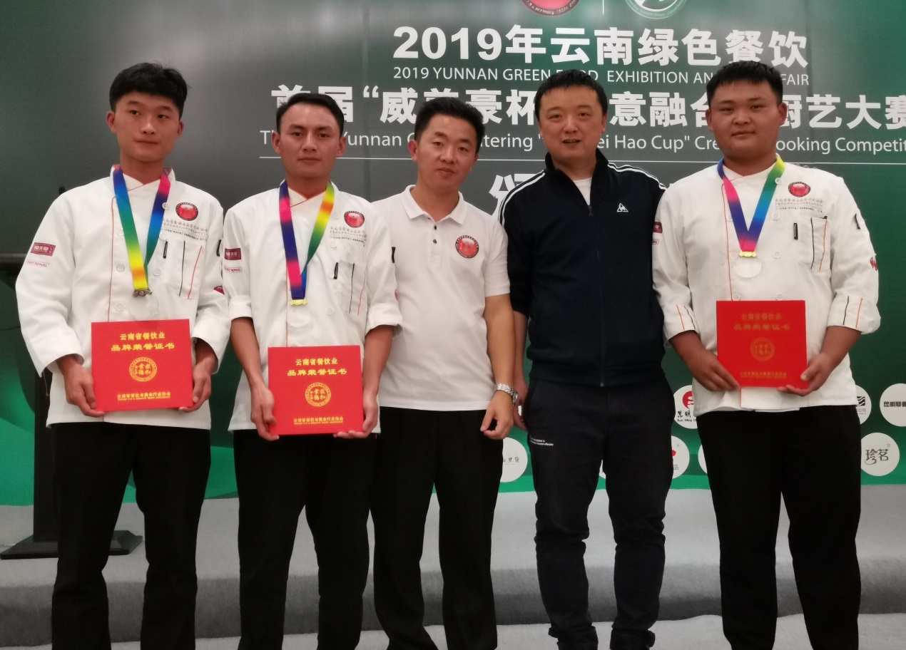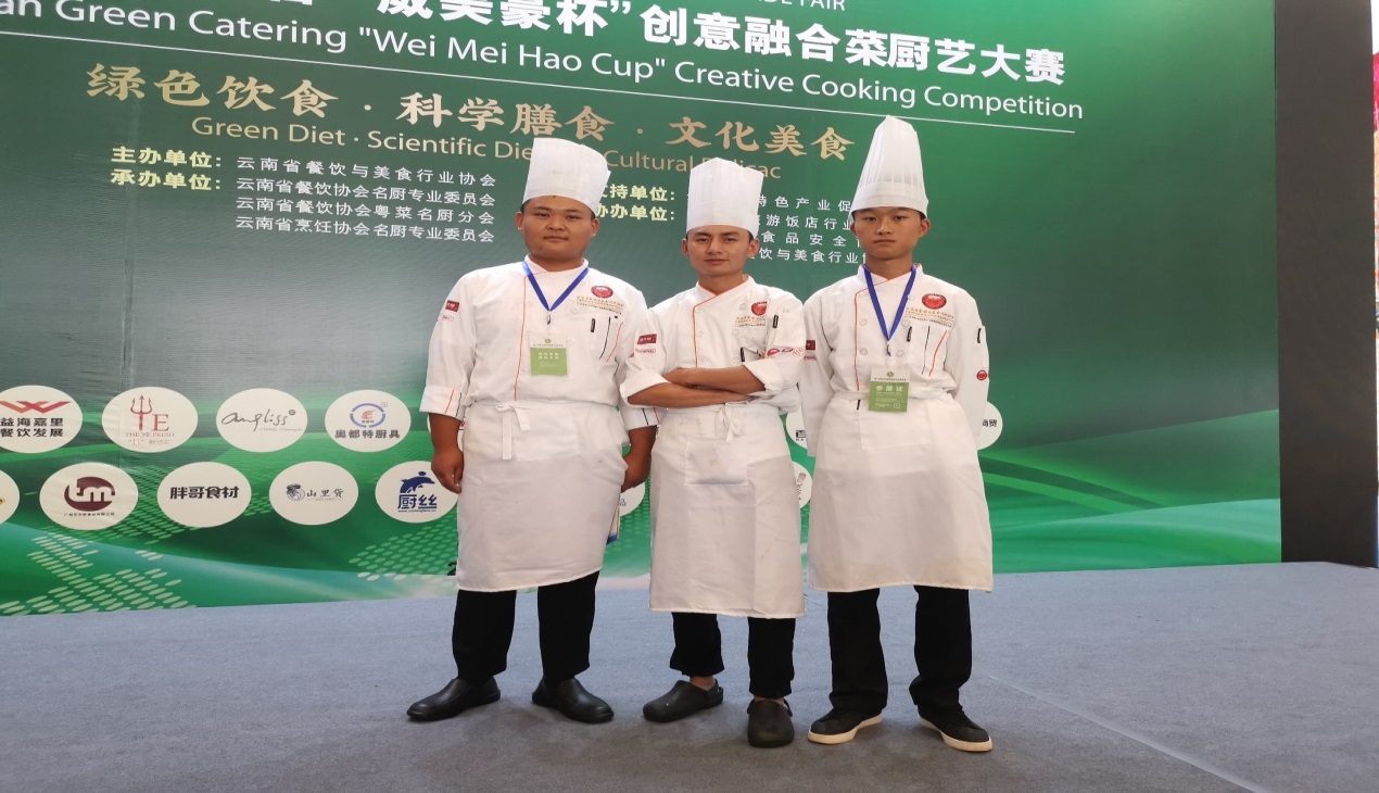 9月6日,在滇池会展中心举办的2019云南绿色餐饮“创意融合菜”厨艺大赛中,bevictor伟德选派的汪家辉、陈达标和陈星沛三位同学在王勇、刘福灿两位老师的悉心指导下,从200多名参赛选手中脱颖而出,斩获两金、一铜的优异成绩。
