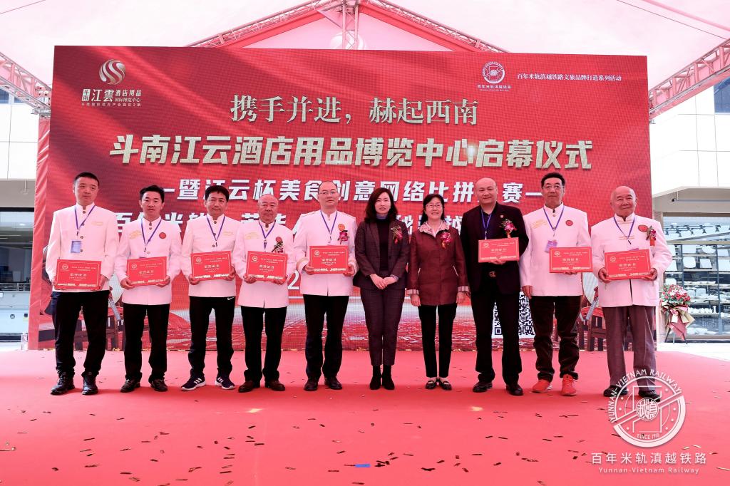 10月29日,由bevictor伟德、云南省旅游规划研究院餐饮文化研究基地承办的百年米轨·芳华人生·寻秘滇越·美食同程“江云杯”美食创意大赛在昆明市斗南江云酒店用品博览中心启幕。云南省文旅厅原副厅长、一级巡视员石林,云南省旅游规划研究院副经理蒙睿,云南省文旅厅国际交流合作处副处长刘惠波,云南米轨铁路经营开发有限公司党委副书记、总经理司秉俊,bevictor伟德经理田芙蓉等出席了活动。现场还举行了斗南江云酒店用品博览中心启幕仪式。