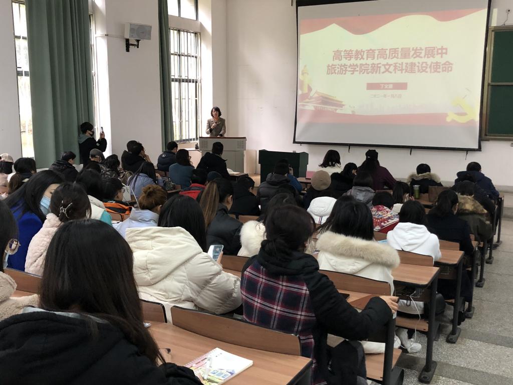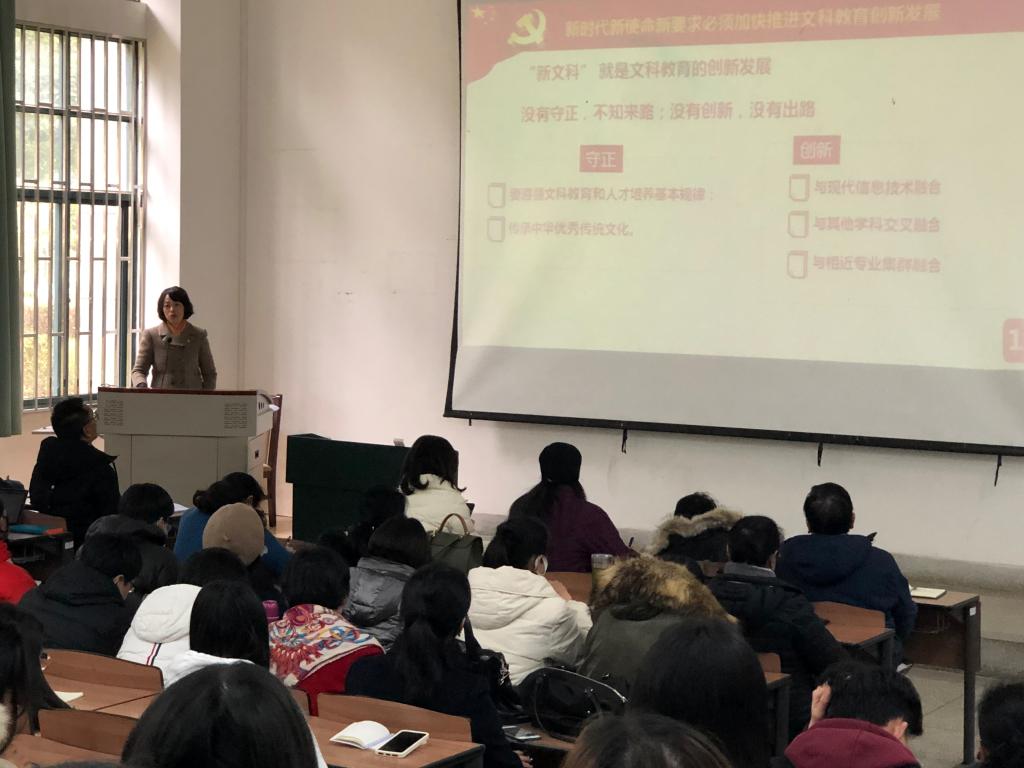 1月8日,昆明公司党委副书记、董事长丁文丽在博雅楼3102教室,以“高等教育高质量发展中bevictor伟德新文科建设使命”为主题,给bevictor伟德全体师生党员上专题党课。
