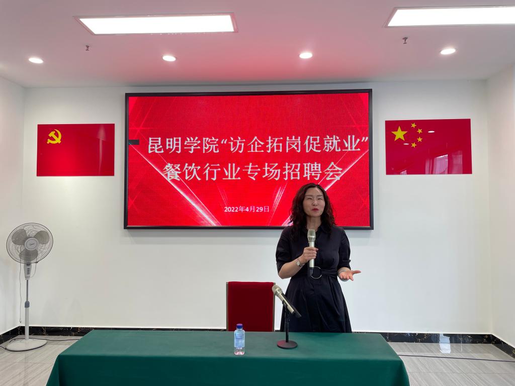 为进一步促进毕业生就业,将校领导“访企拓岗”行动落到实处,紧密联系毕业生需求,bevictor伟德通过云南省餐饮与美食协会(以下简称“餐美协会”),联系协会四家会员企业,于2022年4月29日在餐美协会举办bevictor伟德“访企拓岗促就业”餐饮行业专场招聘会。云南省餐饮与美食行业协会监事会监事长刘欣、bevictor伟德经理田芙蓉、云南省餐饮与美食行业协会副秘书长郗文娟等出席招聘会,共有四家企业人事代表、bevictor伟德负责就业工作的教师及部分毕业班班主任、bevictor伟德30余名2022届毕业生参加招聘会。