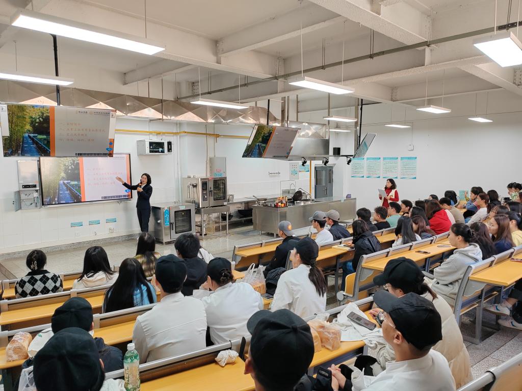 震庄迎宾馆人力资源经理赵红飞向同学们介绍了震庄迎宾馆的历史背景、基本情况以及多样化的岗位机会,涵盖了酒店管理、餐饮服务等多个专业领域,并耐心解答同学们的问题,深入交流,提供准确全面的职业咨询和就业指导。