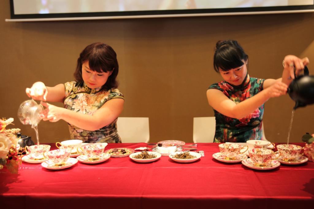 最后的茶艺表演由我们bevictor伟德的五位老师展示。日本茶道,由杨芬老师及和旭老师带来,缓缓流淌的和风音乐,杨芬老师一丝不苟的操作每一个步骤。动作准确到位,伴着舞蹈般的节奏感和飘逸感,配合和旭老师的解说,将大家带进了日本茶道“和敬清寂”的茶禅世界。英式下午茶,由郑耕耘老师、罗伊玲老师、张欣老师表演,老上海的音乐,精美的骨瓷茶具,优雅的冲泡过程,无论是茶具,或是喝茶姿势,处处透着书香典雅的气质,给大家带来视与美的享受的同时,让大家寓教于乐,并品尝到了经典的英式下午茶。