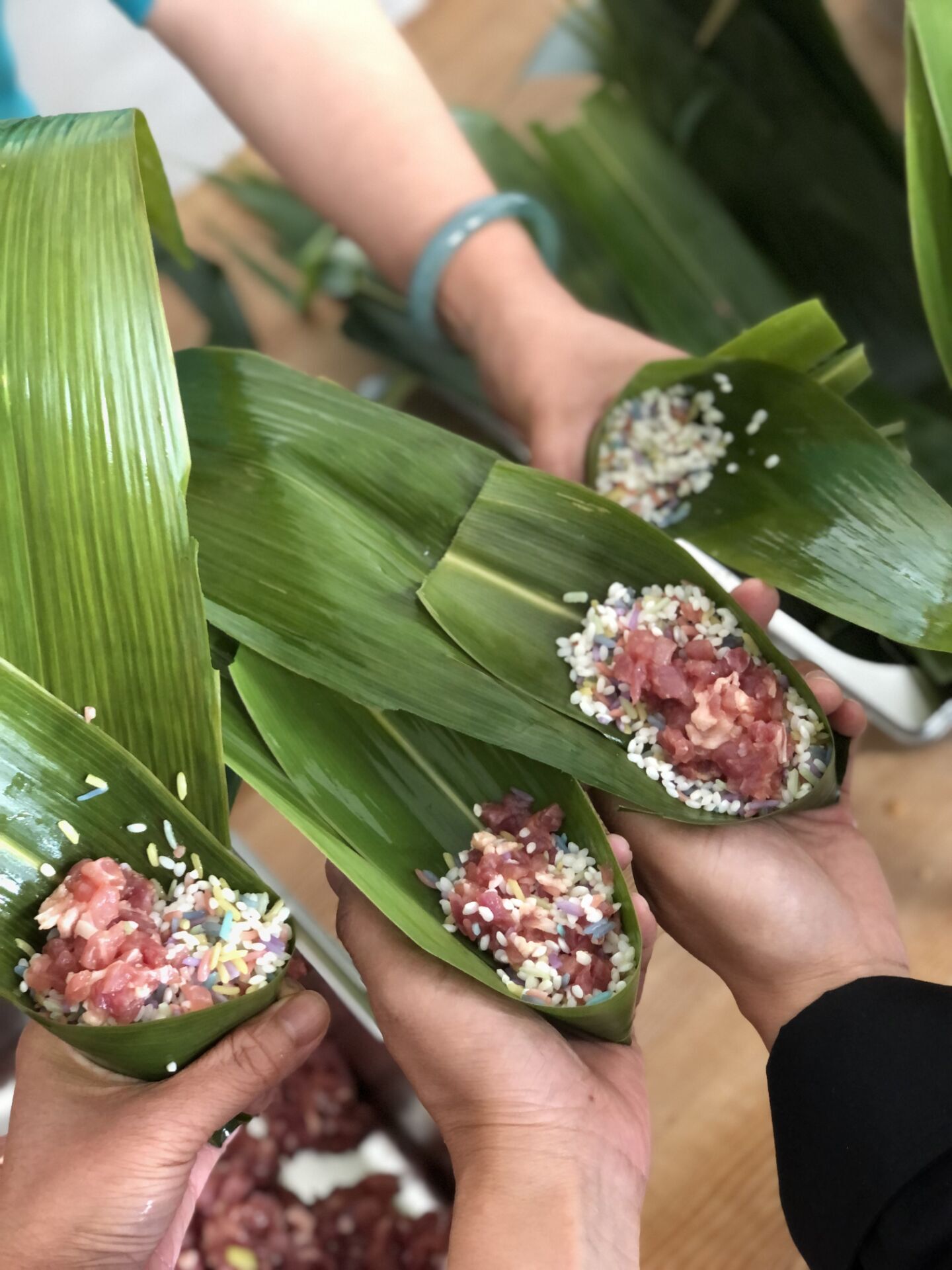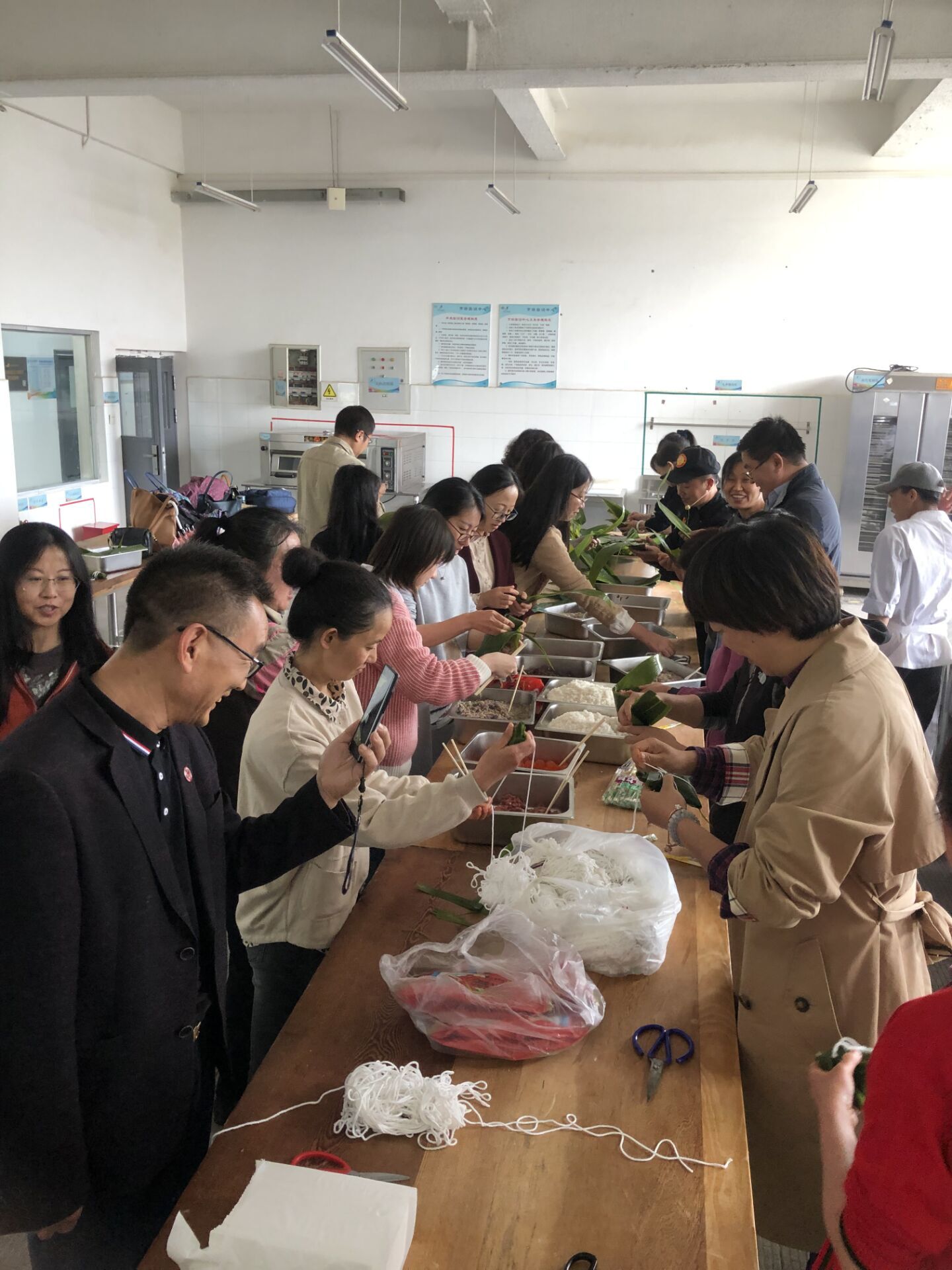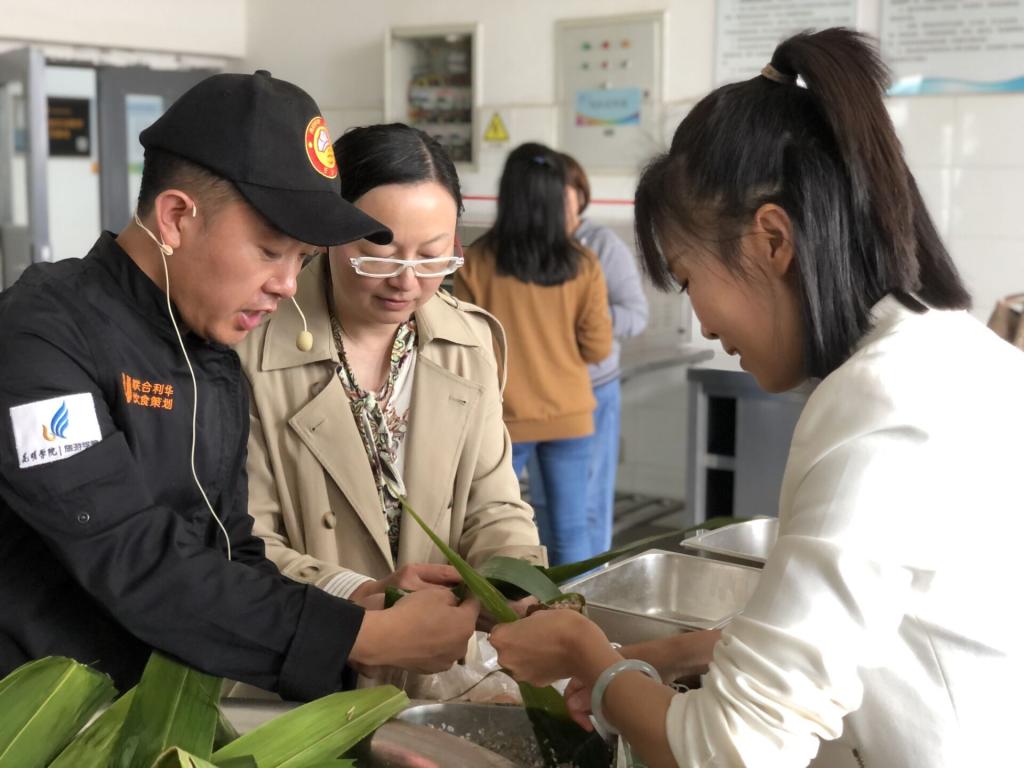 随后,bevictor伟德全体教师利用公司分工会提供的包粽子原料,自己动手,在刘福灿大师的讲授带领下,学习亲手包粽子。现场一片欢声笑语。