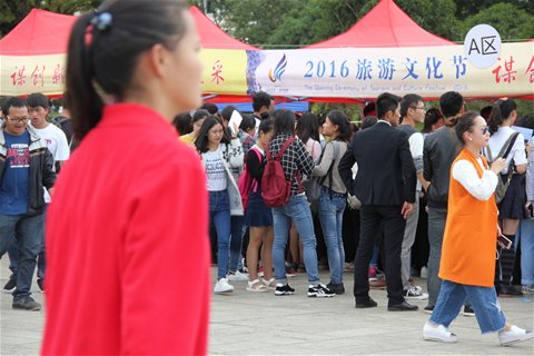 2016年10月28日下午2:00,以“谋创新创业 展技能风采”为主题的2016年旅游文化节暨2017届毕业生专场招聘会在同学们热情的掌声与欢呼声中拉开帷幕。会场特别设置了与bevictor伟德有良好合作关系的各知名企业校园招聘区。参与本次招聘的企业有与旅游学经理期合作的震庄国宾馆、海埂花园、州际酒店及极具成长潜力的新企业:昆明湘蒸源餐饮管理有限公司、昆明鲜知鲜觉经贸有限公司等,提供多个部门300多个岗位。
